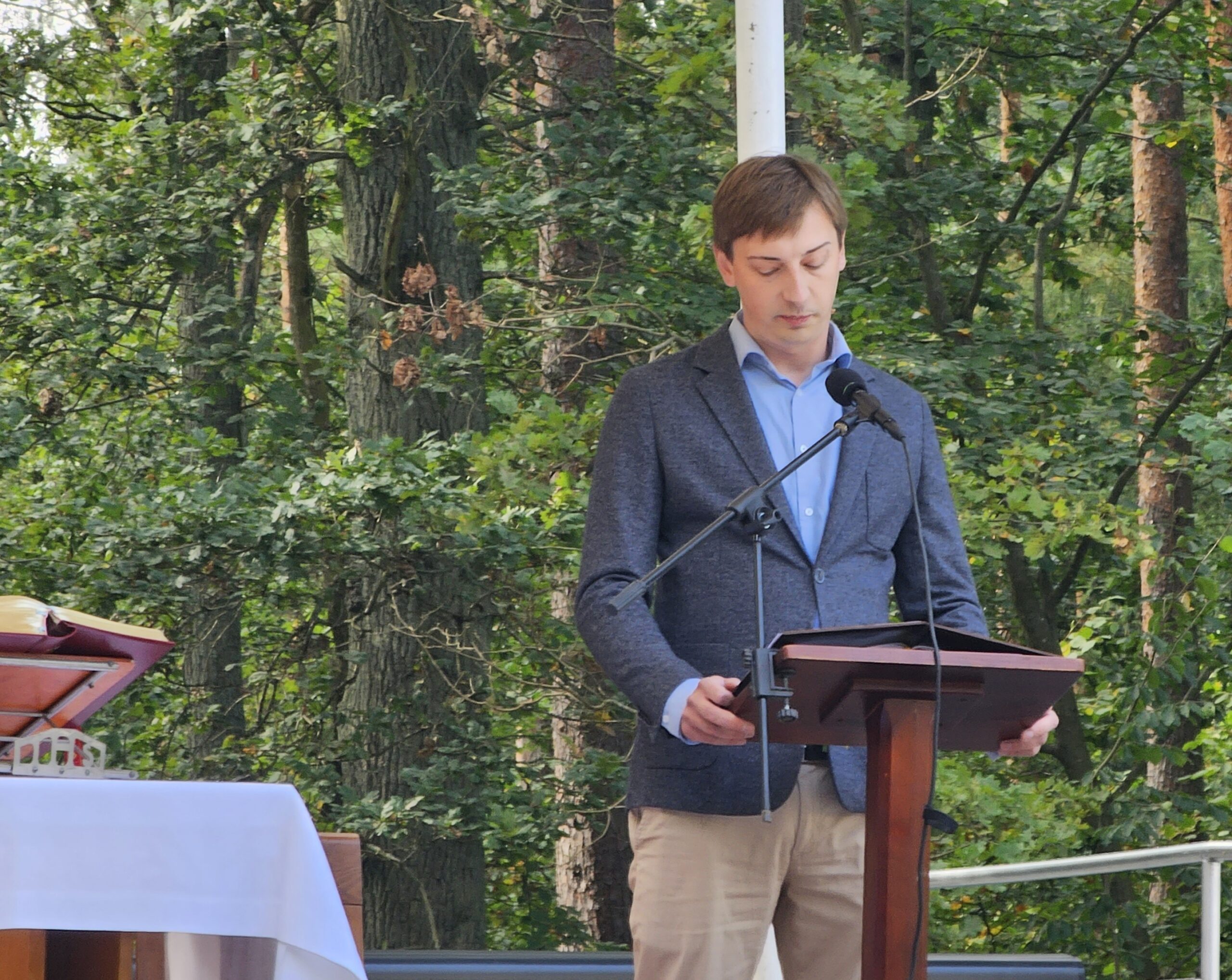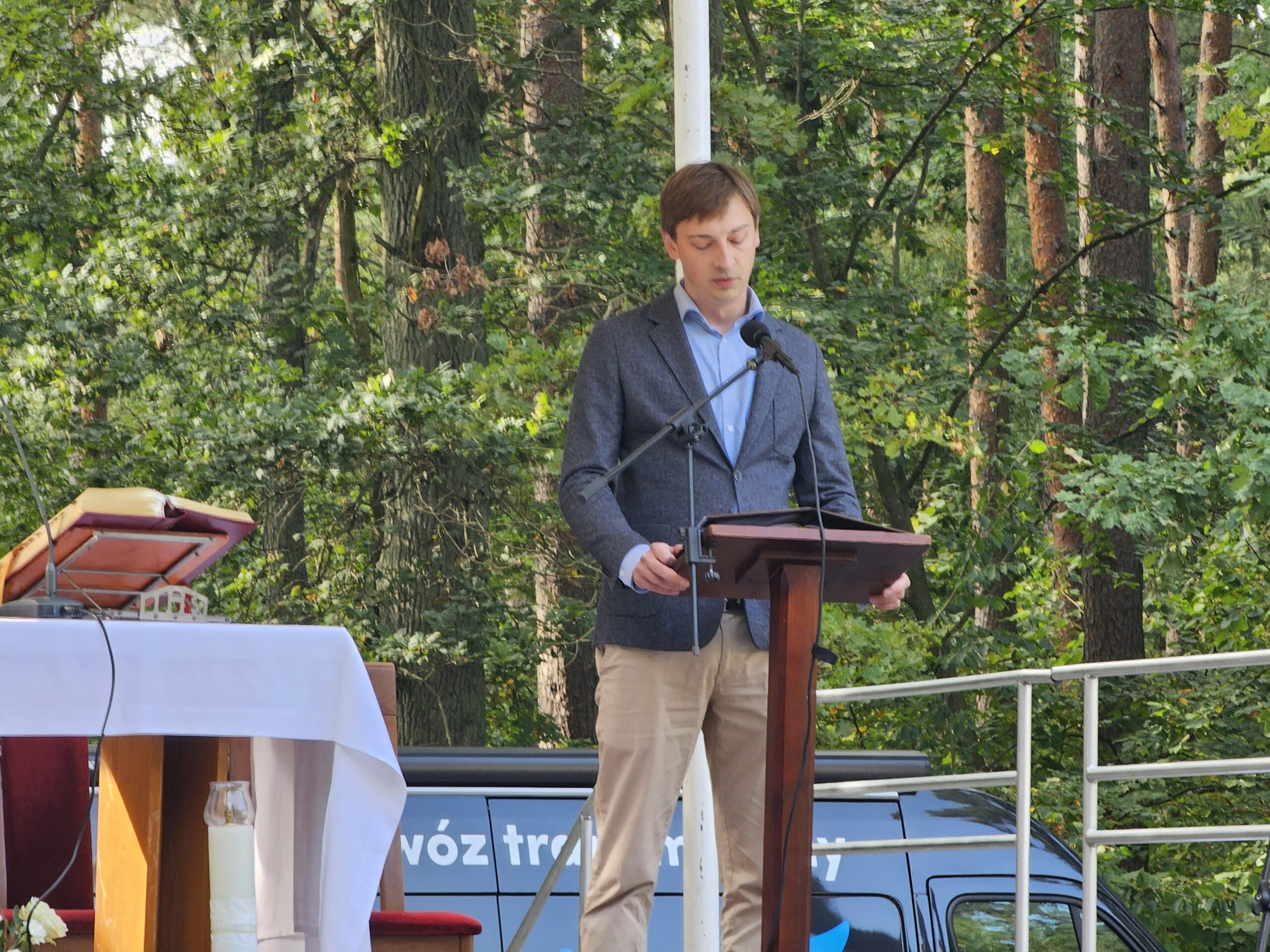 – Będąc na cmentarzu w Lesie Szpęgawskim, stojąc przed Państwem chciałbym pochylić się nad tymi, których Niemcy w tym tragicznym miejscu pozbawili życia. Byli to ludzie tacy sami jak my, reprezentujący różne zawody i profesje. Reprezentujący różne środowiska. Łączyło ich jedno. Po 1 września 1939 r., kiedy Niemcy z zaskoczenia zaatakowały Polskę stali na drodze do umocnienia niemczyzny na tych terenach (…) Wasza obecność w tym miejscu świadczy jednoznacznie, że zbrodnia w Lesie Szpęgawskim nie jest zamierzchłą historią. Co więcej, to element szerokiej świadomości społecznej i głębokiego zakorzenienia w lokalnej pamięci. Pozwala to nam kultywować pamięć o ofiarach, dla których ten las stał się miejscem ostatniego spoczynku. Przypomina nam o tym monument w Szpęgawsku, gdzie umieszczone imiona i nazwiska ofiar. Owe 2402 znane z imienia i nazwiska osoby są najbardziej wymownym dowodem na to, co wydarzyło się w tym miejscu i przestrogą dla przyszłych pokoleń. Pamiętajmy o Lesie Szpęgawskim – mówił Kubicki